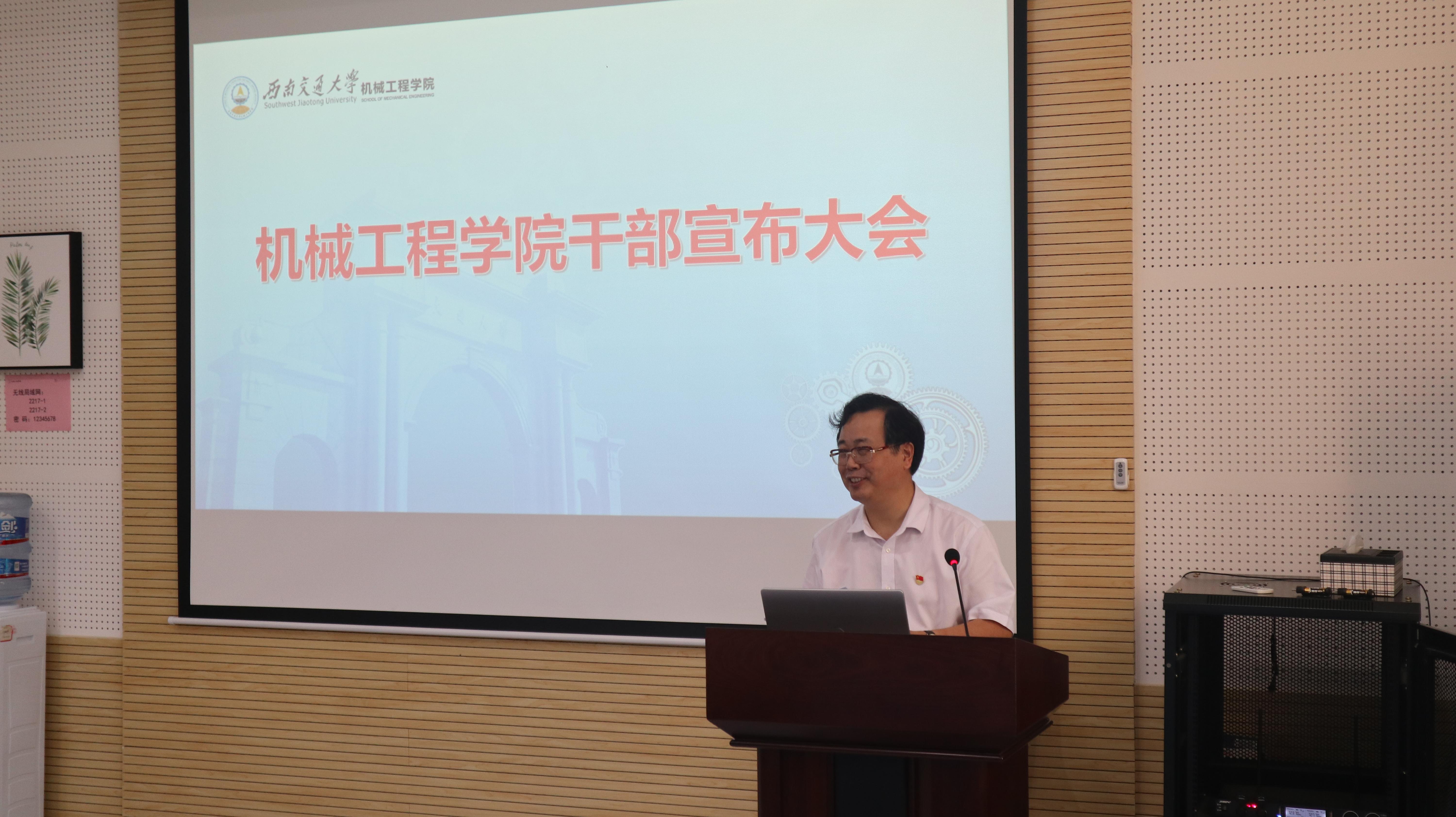 韩旭东同志首先宣读了中共西南交通大学委员会关于yl23455永利官网党委书记的任免通知:同意战凤同志辞去yl23455永利官网党委书记、委员职务;任命董大伟同志为yl23455永利官网党委委员、书记。