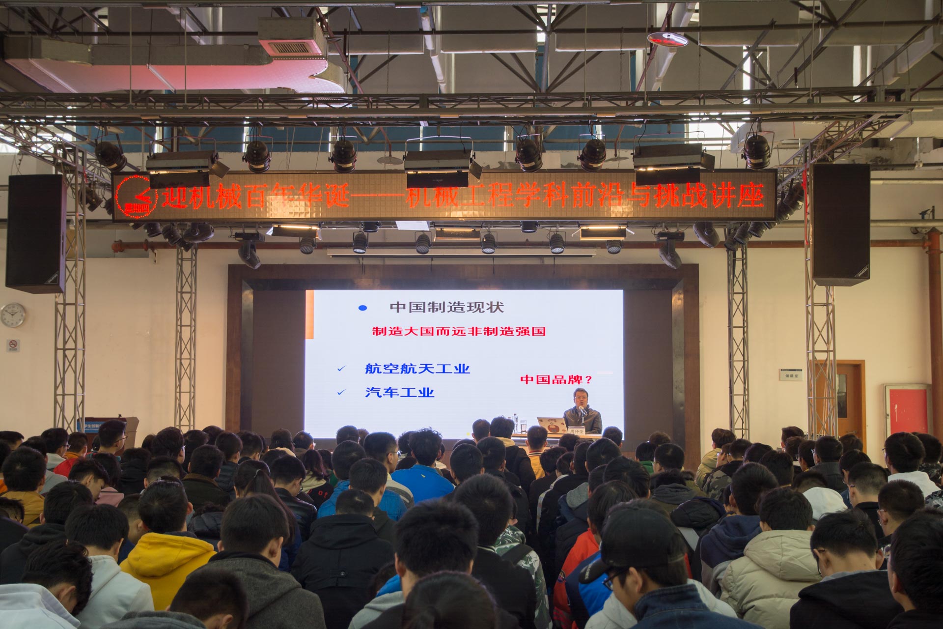 讲座中,周校长用平实生动的语言就机械学科进行了描述,他说道,所谓机械,无非是从材料到零件到机构到机器的有机转换过程,其中每一步的运行、损伤、机理都至关重要。总的来说,机械工程的科学含义是由自然科学到工程行为的过程。周校长强调道:“机械工程学科是非常重要的学科,机械工程是社会发展的主要支撑,机械强则工科强,制造强则中国强。”周校长谈到,我校机械学科历史悠久,功勋卓著,培养了一大批优秀的人才。